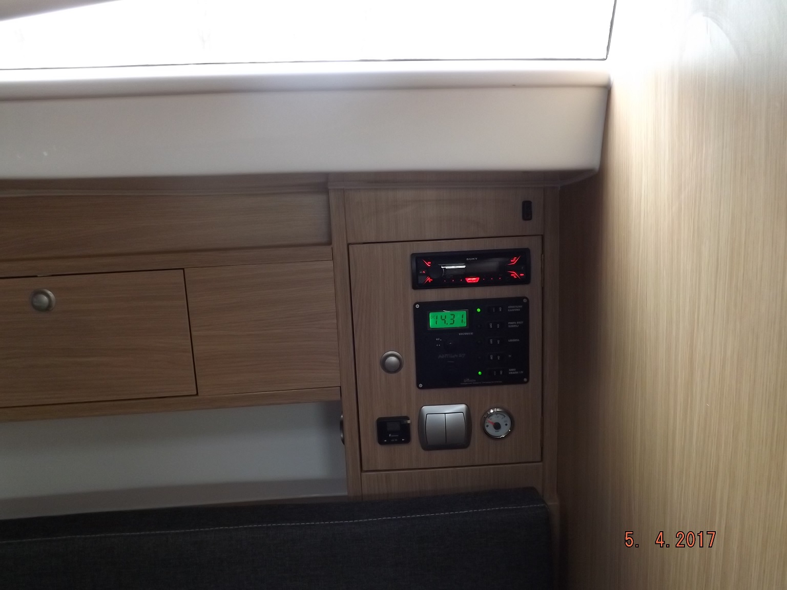 Wyposażenie dodatkowe: bramka do kladzenia masztu, sztywny sztag, roll fok, lazzy jack, instalacja wody - zbiornik, radio, CD, mp3, TV, lodówka, ogrzewanie, instalacja 230 V