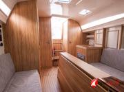 Wyposażenie dodatkowe: bramka do kladzenia masztu, sztywny sztag, roll fok, lazzy jack, instalacja wody - zbiornik, ciepła woda, radio, mp3, TV, lodówka, ogrzewanie, instalacja 230 V, ster strumieniowy, echosonda, lo